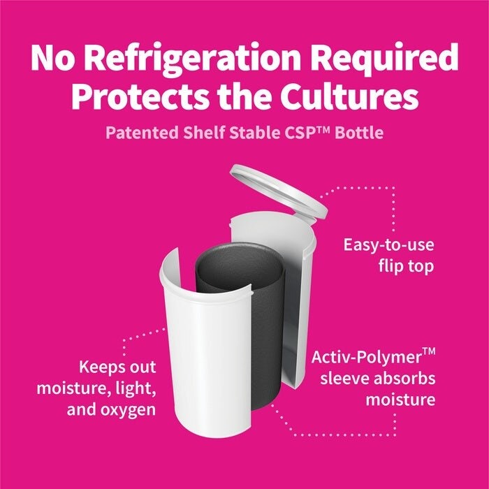 Yes, it is shelf-stable and does not require refrigeration, thanks to a patented bottle and packaging technology that protects the live cultures. For best results, store it in a cool, dry place away from direct sunlight and excessive heat. Once opened, keep the lid tightly sealed.